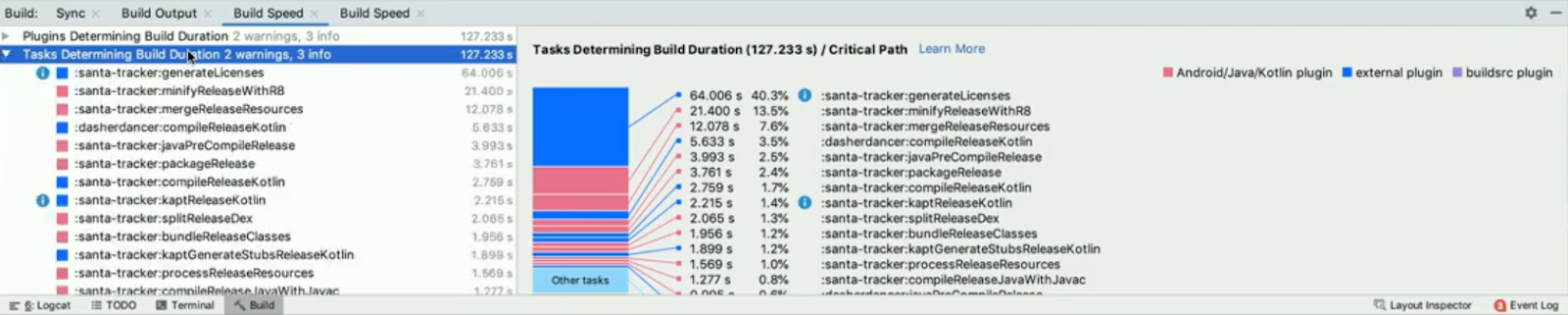 프로세스의 빌드시간을 native 와 plugin으로 세분화하여 보여줍니다.
