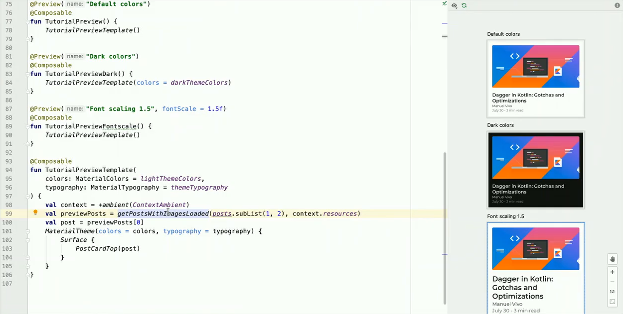새로운 최신 UI 툴킷인 Jetpack Compose를 통해 미리보기를 제공합니다.