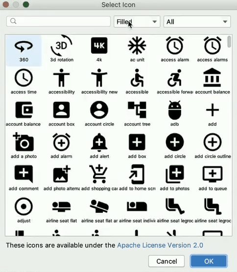 Android Studio에는 머티리얼 아이콘을 추가하고 SVG(Scalable Vector Graphic)와 PSD(Adobe Photoshop Document) 파일을 벡터 드로어블 리소스로 프로젝트에 가져올 수 있는 Vector Asset Studio라는 도구가 포함되어 있습니다.