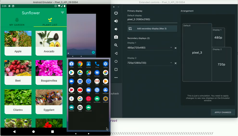 하나의 창에서 여러 사이즈의 에뮬레이터를 나누어 사용할 수 있습니다.